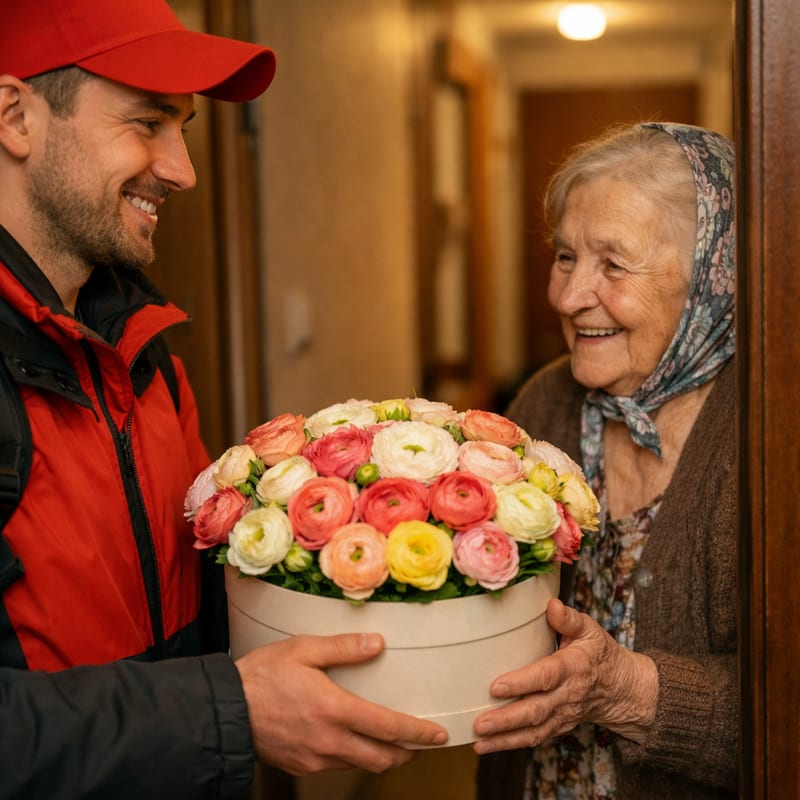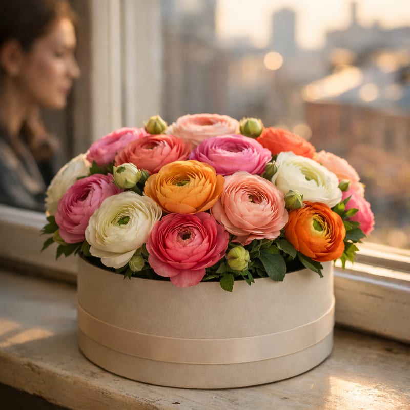 «МонаФлора» — цветочный гипермаркет в Твери и Тверской области, работаем круглосуточно. Ранункулюс в коробке стоит 7–10 дней при правильном уходе. Сезон в России — январь-май, в межсезонье поставки из Эквадора (дороже на 40-60%). Уход: доливать воду в губку каждые 2 дня, держать в прохладе 18-22°C. Бутоны раскрываются за 1-2 дня после доставки. От 500 руб. Доставка бесплатно, специалисты привезут первосортные цветы быстрее чем за 3 часа. Дополните премиум-сладким, розой в колбе.